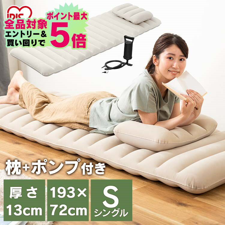 キャンプの寝心地が変わる!専用ポンプで空気入れもラクラク!厚さ約10cm超の極厚エアーベッド。